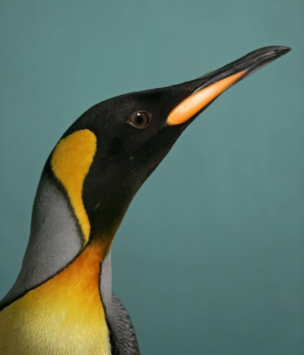 Tarzan, a 4-year-old king penguin, poses for a photo on Wednesday, Feb.